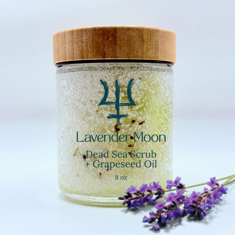 Our Lavender Moon Body Scrub has a heavenly soft lavender with vanilla scent perfect for winding down at the end of the day. Create a weekly shower ritual, or sprinkle some into a bath to wind down at the end of the evening. Our Lavender Moon Body Scrub blend with grapeseed oil and lavender infused jojoba. As always, all of our products are made of the highest quality, simplest, unrefined ingredients for maximum nourishment straight from the beauty of nature.