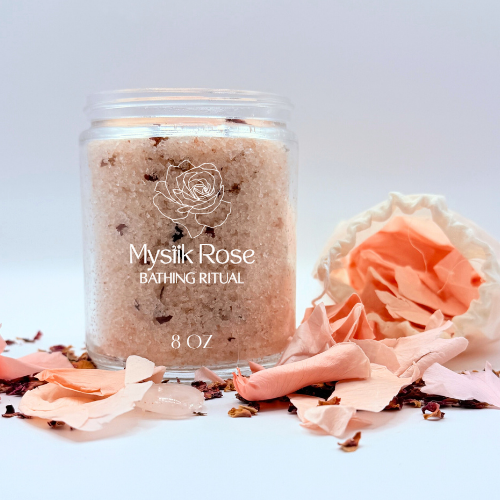 Our Mystik Rose Bathing Ritual is a sensual, earthy blend of rose, sandalwood and cardamom perfect for self-love rituals. Melt away all that no longer serves you and bloom into love. Our Mystik Rose Bathing Ritual is carefully crafted herbal alchemy, charged with solar energy, Venusian energy and rose quartz for an ultimate heart opening experience. As always, all of our products are made of the highest quality, simplest, unrefined ingredients for maximum nourishment straight from the beauty of nature.