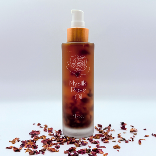 Nurture your enchanted soul with our Mystik Rose Body Oil, perfect for self-love rituals. This rich amber colored oil pumpkin seed oil infused with Madagascar vanilla and rose is packed with minerals and antioxidants. As with all of our products, the Mystik Rose Body Oil is non-pore clogging and can be used on hair, face and body. Our Mystik Rose Oil is solar with rose quartz for 9 hours. As always, all of our products are made of the highest quality, simplest, unrefined ingredients for maximum nourishment straight from the beauty of nature.