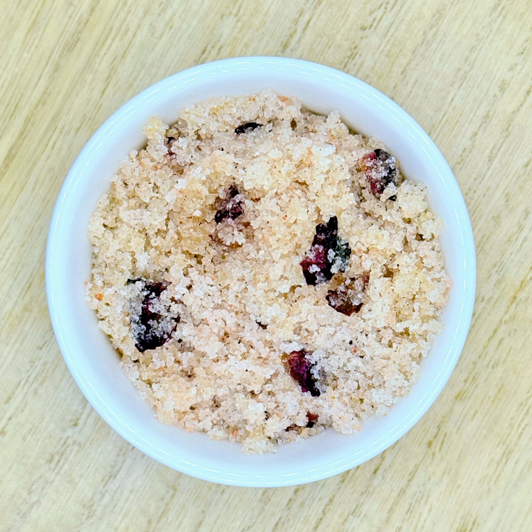 Ingredients: Pink Himalayan Salt, Rose and Vanilla Infused Pumpkin Seed Oil, Organic Jojoba Oil, Organic Dried Rose Petals, Organic Cardamom Powder, Essential Oil Blend