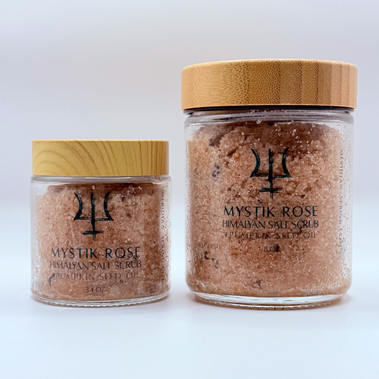 Our Mystik Rose Body Scrub is a sensual, earthy blend of amber, cardamom, sandalwood and rose perfect for fall self-love rituals. Melt away all that no longer serves you with our scrub made from dead sea salt, pink himyalayan salt, and cardamom powder. As always, all of our products are made of the highest quality, simplest, unrefined ingredients for maximum nourishment straight from the beauty of nature.
