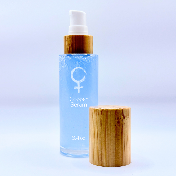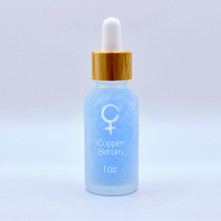 Our Copper Serum is the secret to youthful, radiant beauty. GHK-CU and Copper Gluconate work synergistically throughout the night to repair, smooth and tighten skin. We carry a 1 oz size for face and travel, and a 3.4 oz for whole body application. Our Copper Serum is unscented and benefits all skin types.